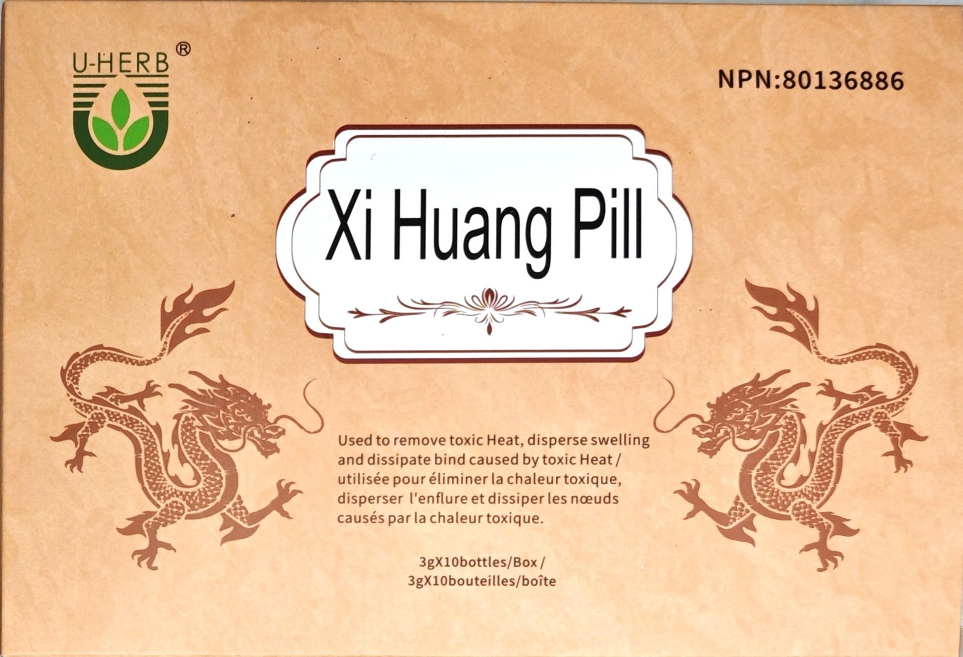 A popular all-natural ingredient, Traditional Chinese Medicine used to remove toxic Heat, disperse swelling and dissipate Bind caused by toxic Heat / Médecine traditionnelle chinoise utilisée pour éliminer la chaleur toxique, disperser l'enflure et dissiper les nœuds causés par la chaleur toxique. NPN 80136886 Super concentrated formula, two times a day, 3g pills each time. 3g pills in a bottle can last 5 days.